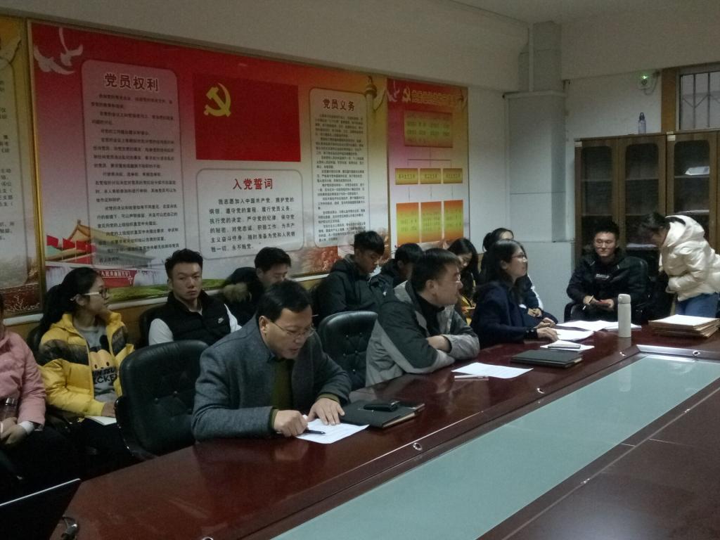 于学院党员活动室举行本科生党支部党员纳新大会。本科生党支部书记梁贺涵,支部组织委员展利民、宣传委员刘京和支部预备党员共25人到场参与会议。