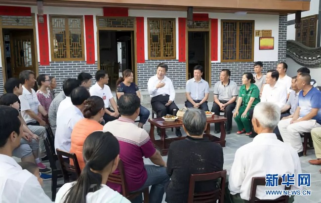 △习近平在湘西土家族苗族自治州花垣县排碧乡十八洞村同村干部和村民座谈。