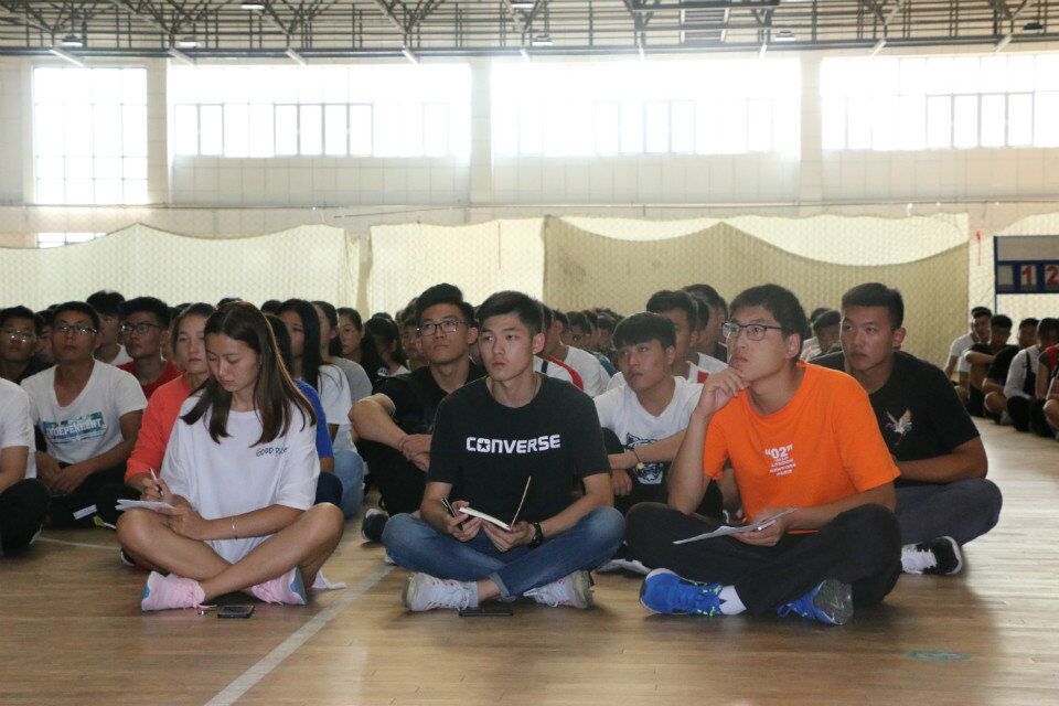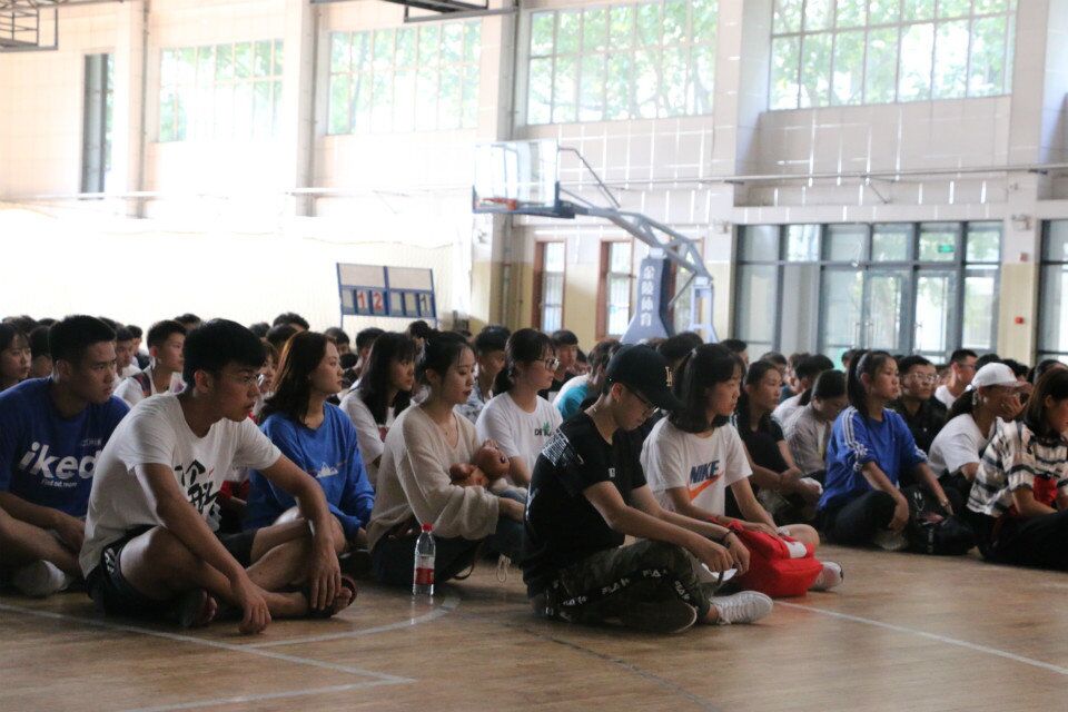 新球馆开展。学院党委副书记展利民、团委副书记梁贺涵、2018级辅导员刘京及各职能科室相关领导、老师出席会议,全体2018级新生参加了大会。大会由团委副书记梁贺涵主持。