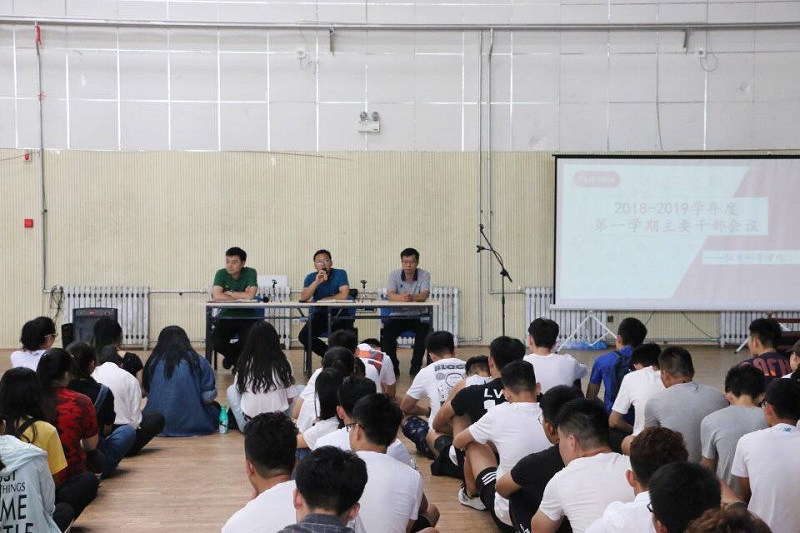 2018-2019学年度第一学期主要学生干部会议。学院党委副书记展利民、团委副书记梁贺涵、2017级辅导员李士建出席此次大会,2015级、2016级、2017级各班班长、团支书、预备党员、入党积极分子以及团委、学生会、社团的主要干部参加了此次会议。