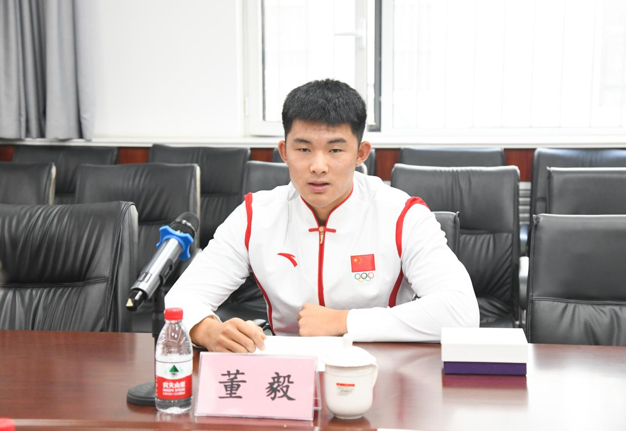 董毅在座谈会上回顾了在备战杭州亚运会的经历,以及在此过程中遇到困难和考验,对母校和老师的培养以及无微不至的关怀表示了感谢。董毅表示,很荣幸能够在亚运会上为国争光、为校添彩,自己将以亚运会作为新的起点,保持初心、戒骄戒躁,在今后更加努力地学习、更加刻苦地训练,继续发扬奥林匹克精神和犁牛之子精神,争取未来在更高规格的比赛中取得更大的突破、赢得更加优异的成绩。