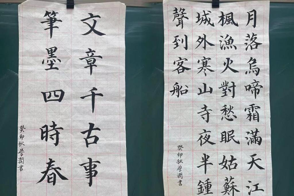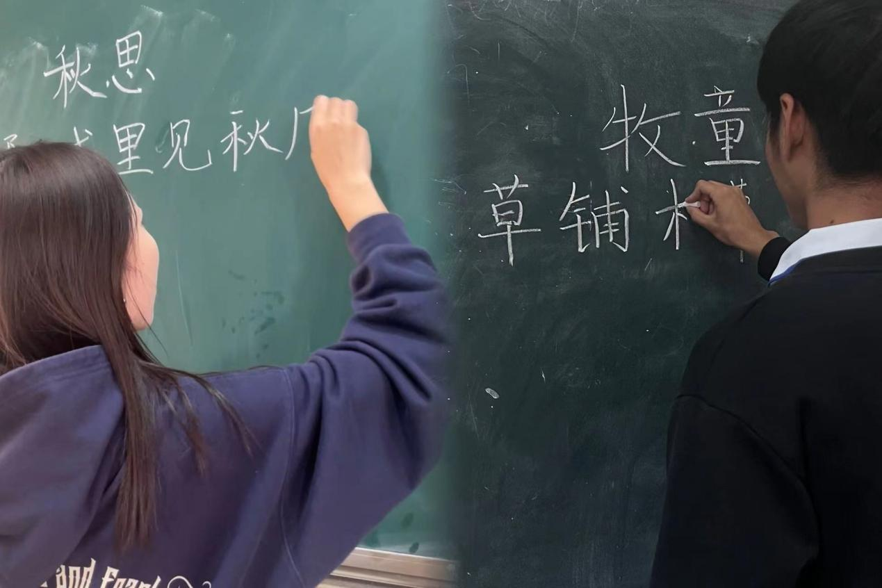 手执粉笔于三尺讲台育人,横平竖直之间尽显师范素养,刚劲有力的字迹舒展于黑板上,是青春在飞扬,也是育人梦想的启航。一行行粉笔字或方正圆润或清秀苍劲,令人赏心悦目。