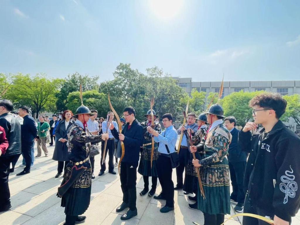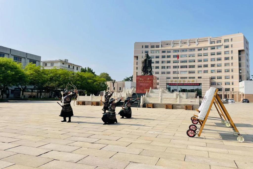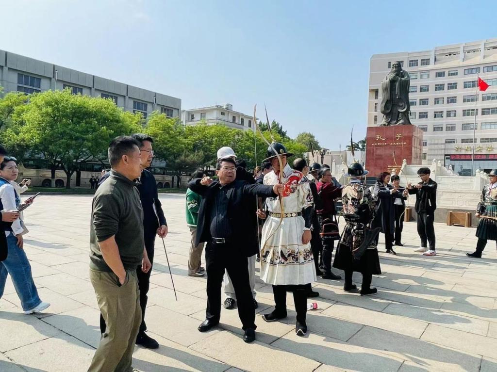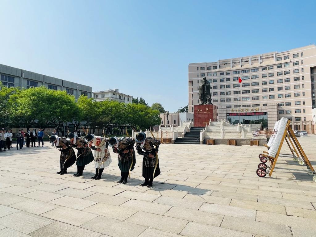 团委孔子射艺发展办公室表演的五人箭阵,以传统文化展演对来访领导的表示热烈欢迎。