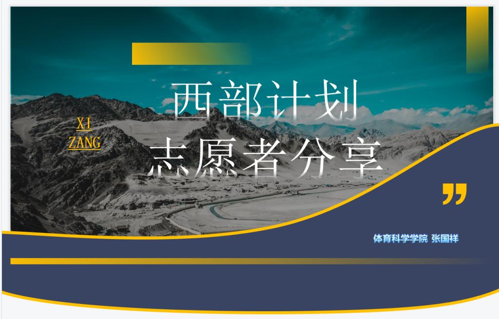 2015级学生、曾服务于西藏阿里地区人力资源和社会保障局的张国祥和生命科学学院2018级学生、目前服务于新疆维吾尔自治区和田地区信访局的柳咏琪担任主讲人。分享会上,张国祥从如何知道大学生志愿服务西部计划项目、西部计划亲身经历分享、参加大学生志愿服务西部计划项目的收获三个方面向同学们介绍了自己参加西部计划志愿者服务项目的心得体会和收获。柳咏琪向同学们介绍了自己在服务基层的工作和生活中、逐渐领悟到志愿服务的含义,从而不断练就工作本领、提升工作技能的亲身经历,号召同学们勇于跟随时代的号召,到西部去、到基层去、到祖国最需要的地方去建功立业、施展才华。