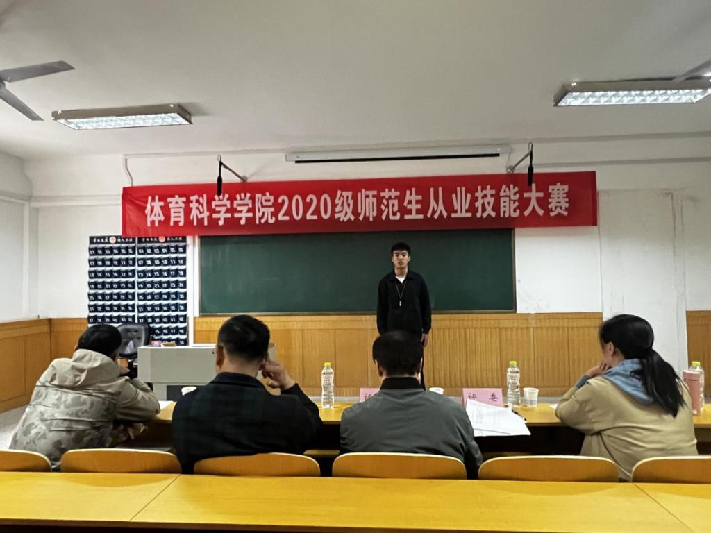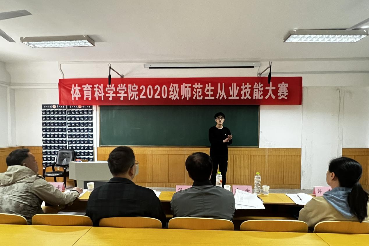 2020级师范类专业学生开展,比赛前期,学院采取多样形式广泛宣传此次比赛,鼓励2020级师范类专业学生积极报名、认真备赛。比赛过程中,参赛选手针对自选的课题,通过说课、模拟上课、答辩三个环节,运用多种教学手段,展现了自身的课堂驾驭能力和日后走上工作岗位、成为一名人民教师的风采。评委老师结合选手们的表现对参赛选手进行了现场指导,针对参赛选手们在讲课过程中出现的问题,提出了针对性建议,为同学们日后走向课堂、成为一名专业的体育课老师提供了帮助。