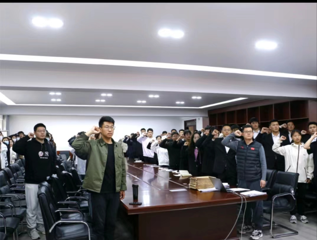 会议最后,由刘赞同志领誓,全体党员进行入党宣誓,坚定入党决心。