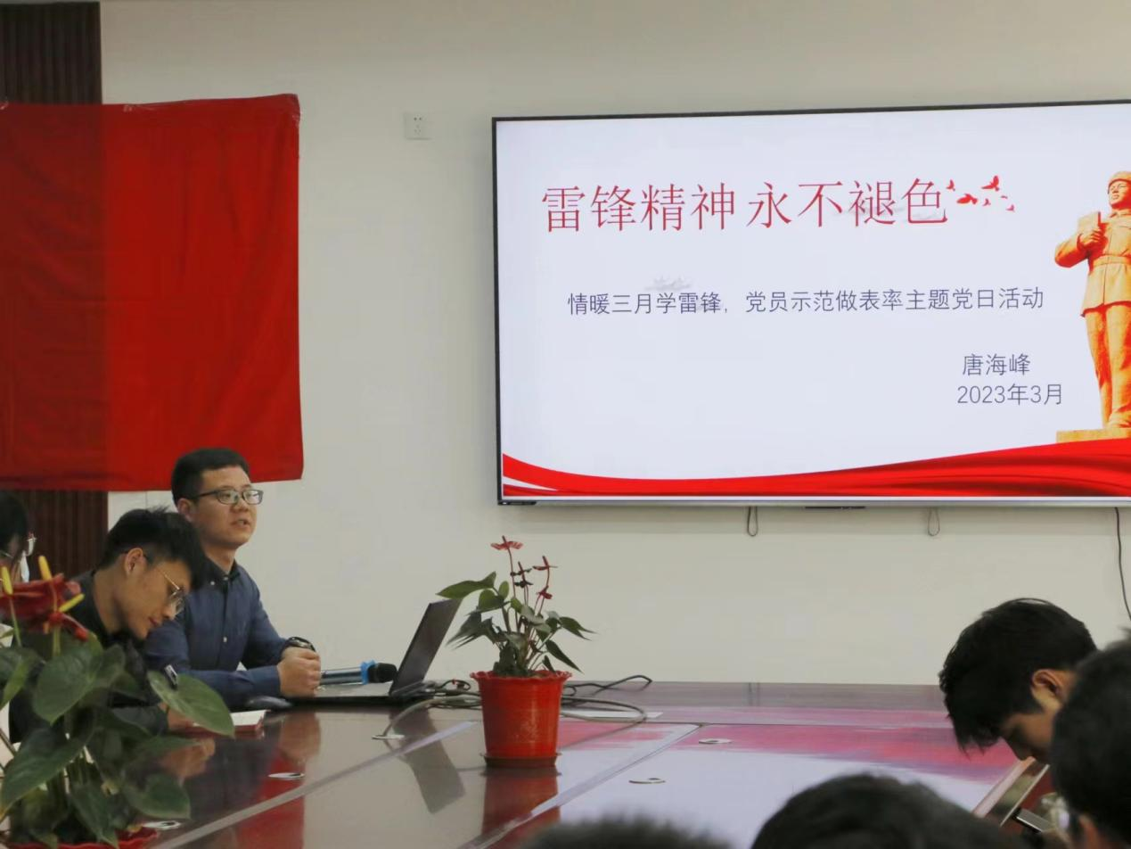 会议上,唐海峰同志以解读雷锋精神为主题,讲述了雷锋同志的事迹,雷锋同志日记中的名言,对雷锋精神进行了精确的解读,本科生党支部将进一步深入学习雷锋精神,统一思想,凝聚共识。引导全体党员树立“无私奉献、勤劳勇敢、自强不息、乐于助人”的良好品质,号召青年党员、学生积极争做新时代雷锋精神的传播者、弘扬者和践行者,在以后的生活中一定要时刻向雷锋同志学习。、