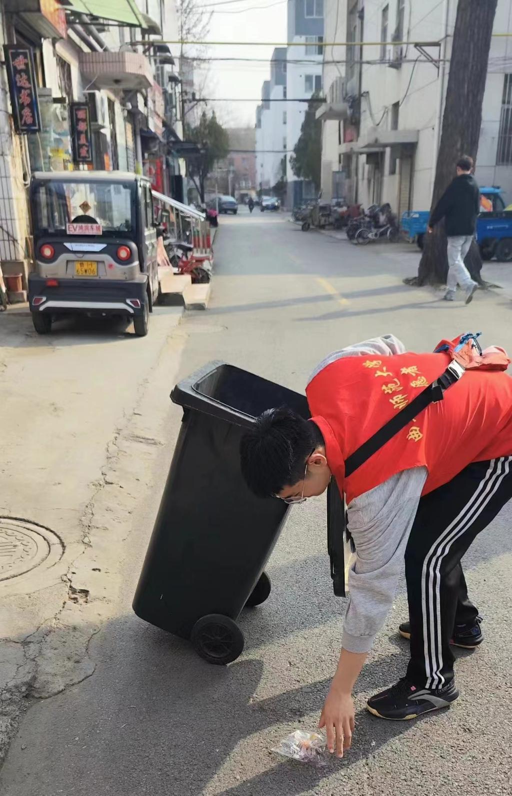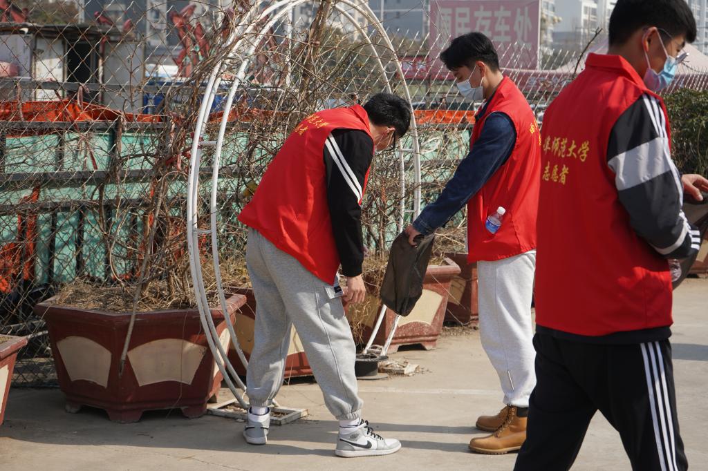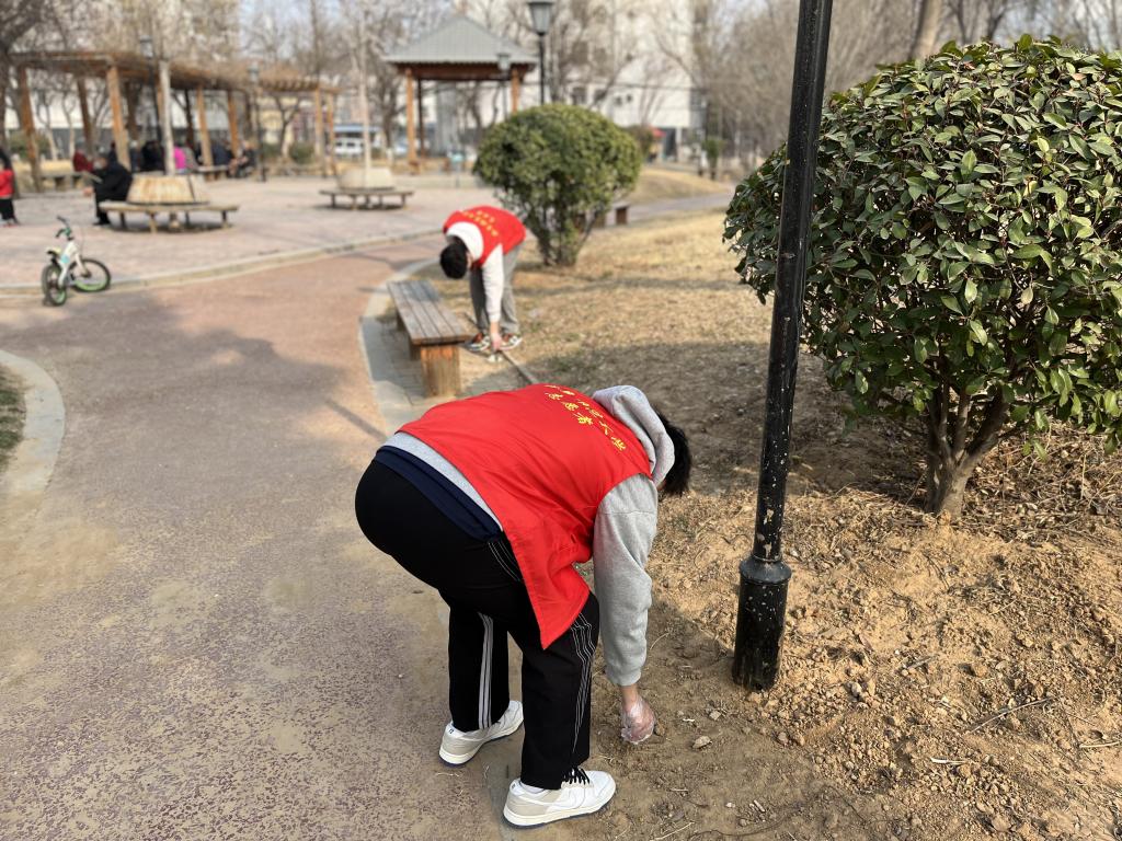 3月4日下午,志愿者们又来到家属区,进行卫生清洁活动。 志愿者们发扬为人民服务的雷锋精神、贯彻爱干净讲卫生的环保理念,分为数个小组,拿起小铲子,清理周边街道的垃圾,铲去张贴在墙上的广告等;捡起垃圾袋和手套。同学们把角角落落的塑料带和生活垃圾,通过用手捡和扫帚扫,将地面环境打扫的干干净净。