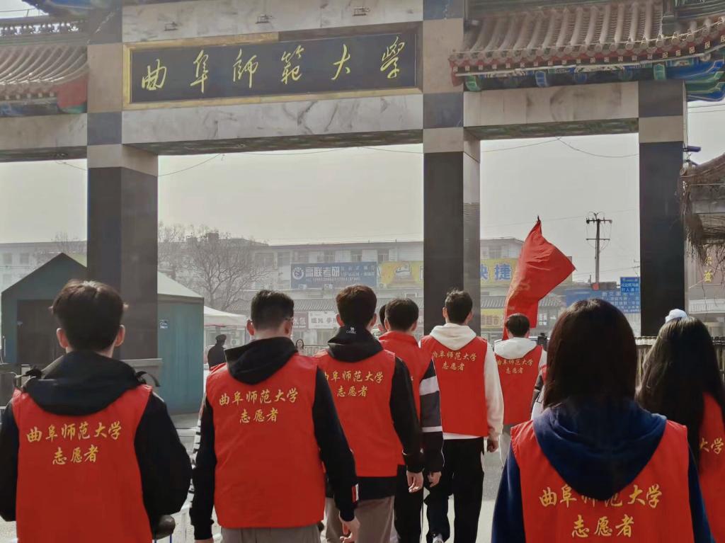 随后志愿者列队前往曲阜汽车站进行志愿服务活动。志愿者分头行动,有的拖地,有的擦玻璃,有的帮旅客搬行李。