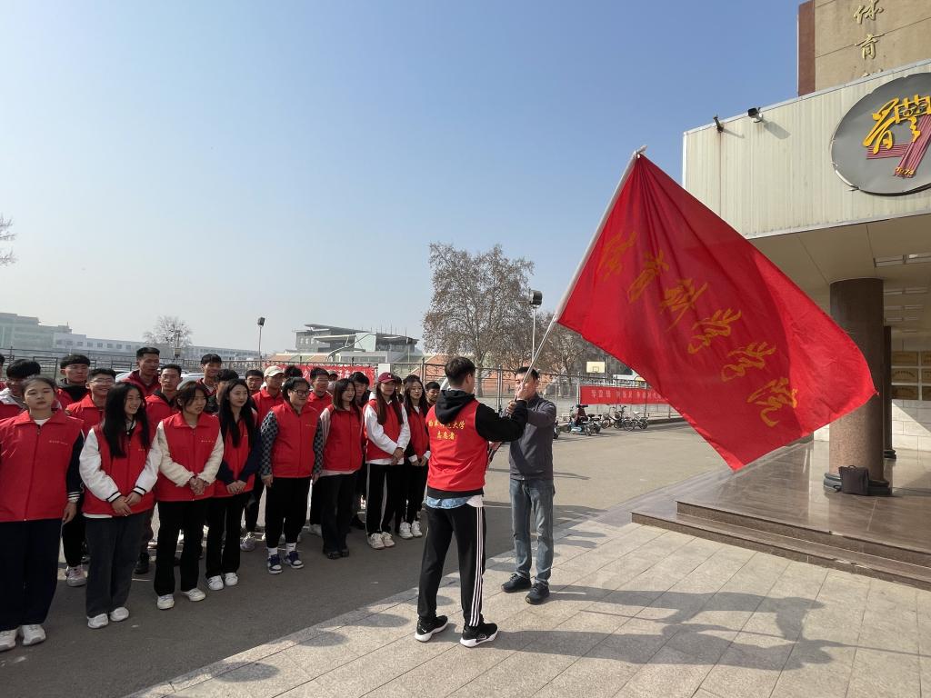 仪式伊始,体育学部党委副书记马振华为学生志愿者授旗,并且围绕此次活动对志愿者提出了新的要求与注意事项,要求志愿者在保证自身安全的情况下认真负责、保质保量的完成志愿服务工作。