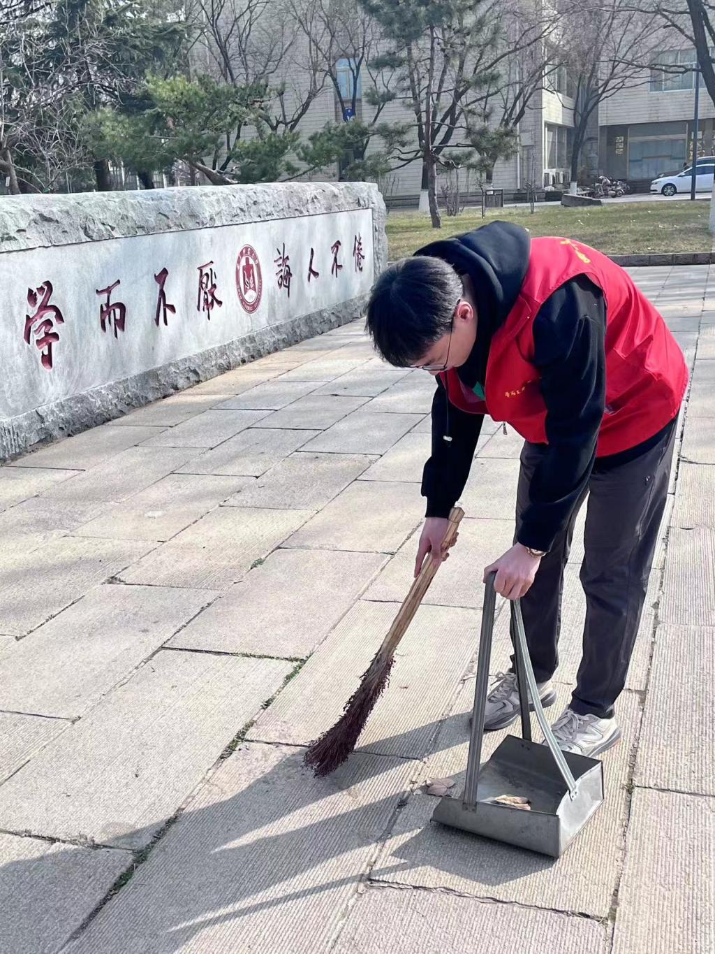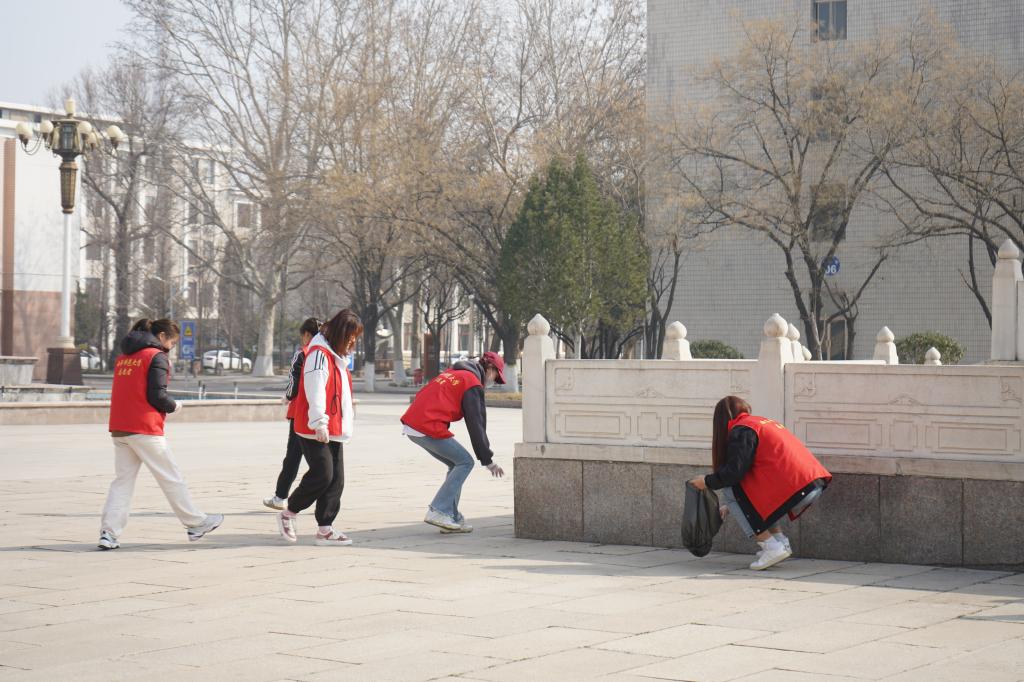 学生志愿者对孔子广场及其周边、以及南操场进行清扫工作。活动现场热闹非凡,志愿者们各显身手,不怕脏不怕累,争先恐后的捡拾垃圾,打扫卫生,不一会儿的功夫,孔子广场及其周边、以及南操场环境焕然一新。