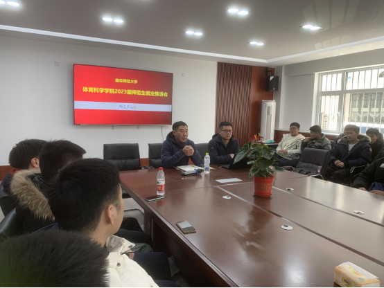 在学院会议室召开就业工作推进会。体育学部党委副书记马振华,毕业班全体学生参加会议,会议由毕业班辅导员唐海峰主持。