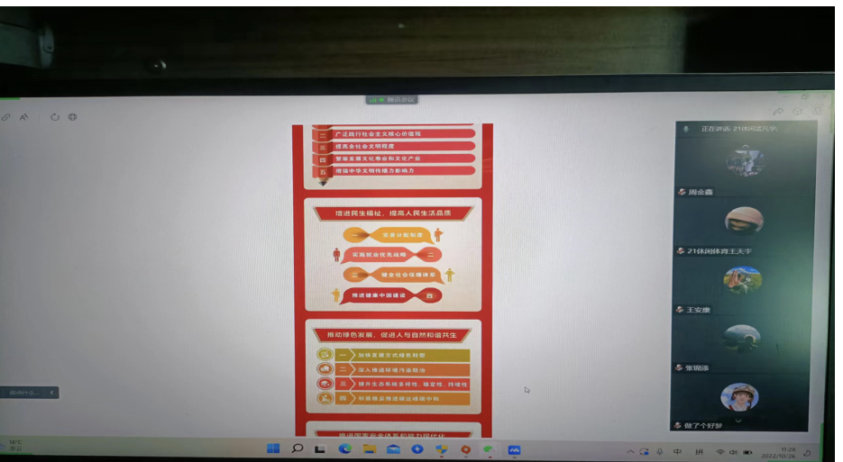 体育科学学院团委组织各团支部团员通过线上会议、谈学习心得等多种形式学习中国共产党第二十次全国代表大会报告,会议由各团支部团支书组织进行。