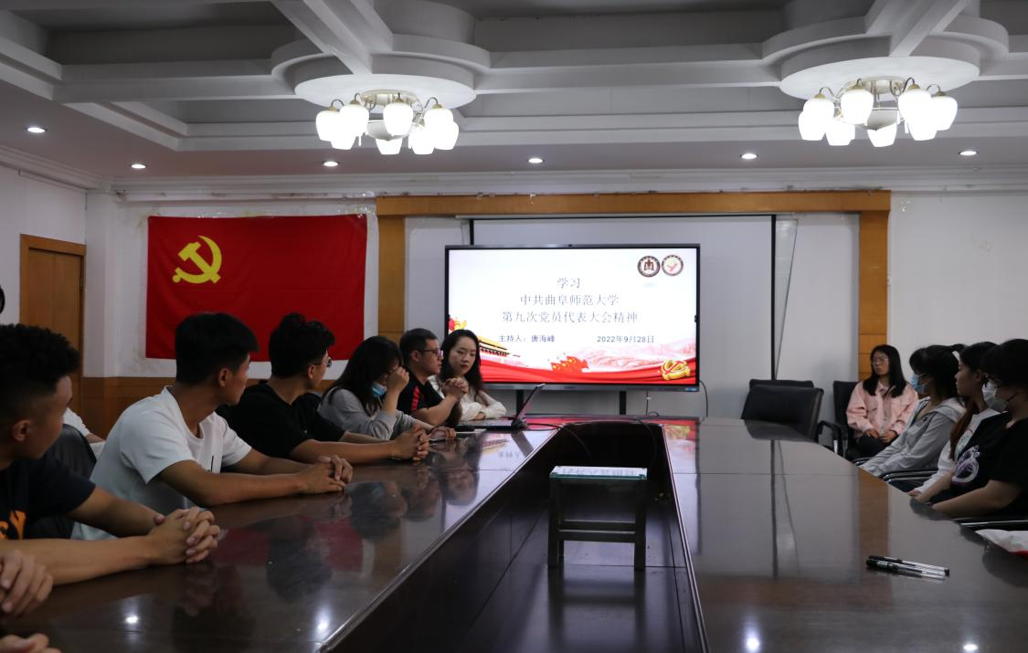 本科生党支部组织全体党员于2022年9月28日在系楼106会议室召开深入学习学校第九次党代会精神会议,会议由本科生党支部书记唐海峰老师主持。