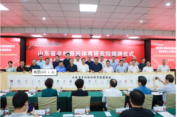 山东省乡村振兴体育发展联盟单位首批理事单位代表签署共建协议。