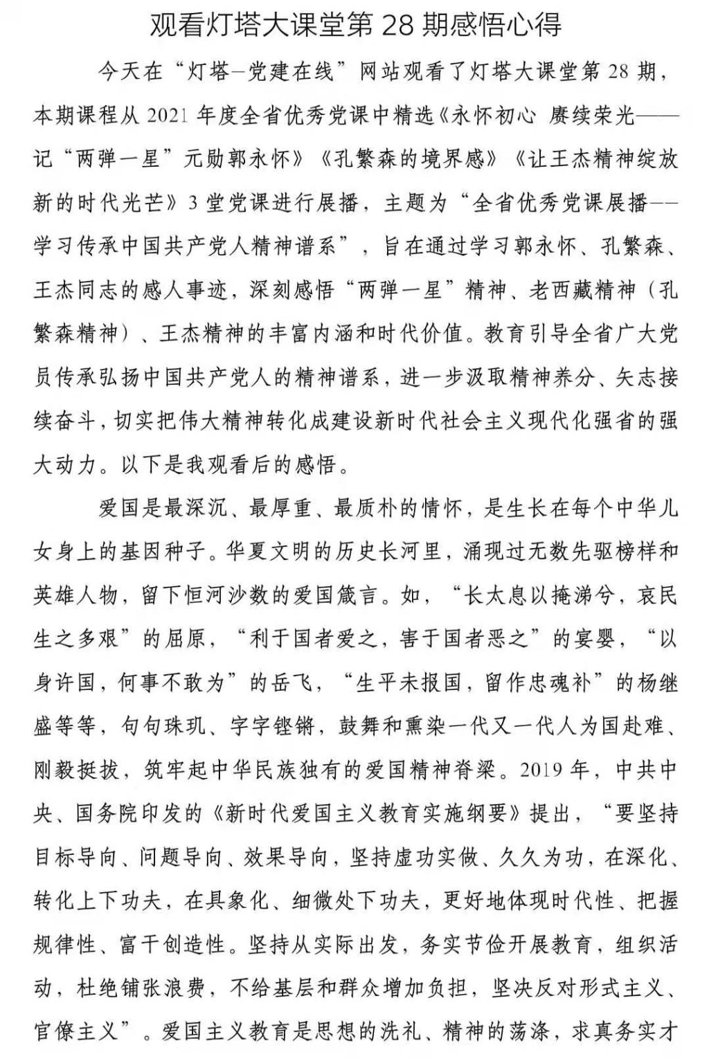 本科生党支部于2022年4月5日,组织支部全体党员自主学习灯塔第二十八课,本次活动以全体党员线上自主学习形式化开展。