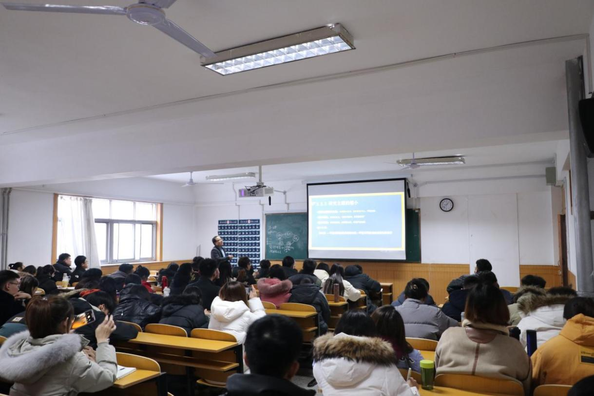 上午,郭老师从核心期刊的发文困境、选题立场、选题要素这三个视角,详细讲解了论文选题过程中要明确研究主题的来源,做好研究问题的评估,采用恰如其分的研究方法服务研究对象等内容。下午,郭老师从结构方程模型类论文拆解与逻辑抽取、引言部分撰写技巧、正文部分论文的撰写与AMOS软件简单操作四个方面展开了讲解。进一步帮助同学们探索打开核心期刊大门的钥匙。在最后的互动环节中,师生们积极踊跃地提问,郭老师也都一一给予耐心的解答,讲座气氛达到高潮。通过郭老师精彩的学术讲座,开拓自己科研思路、丰富自我学术研究、优化自我学术体系,为学院学术的研究提升贡献智慧和力量。