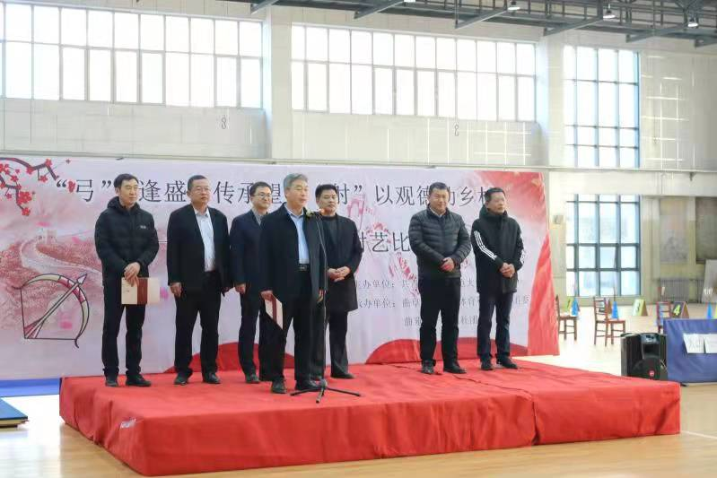 副院长伊超,射艺指导教师刘建国莅临指导。体育学部党委副书记马振华主持本次比赛开幕式。