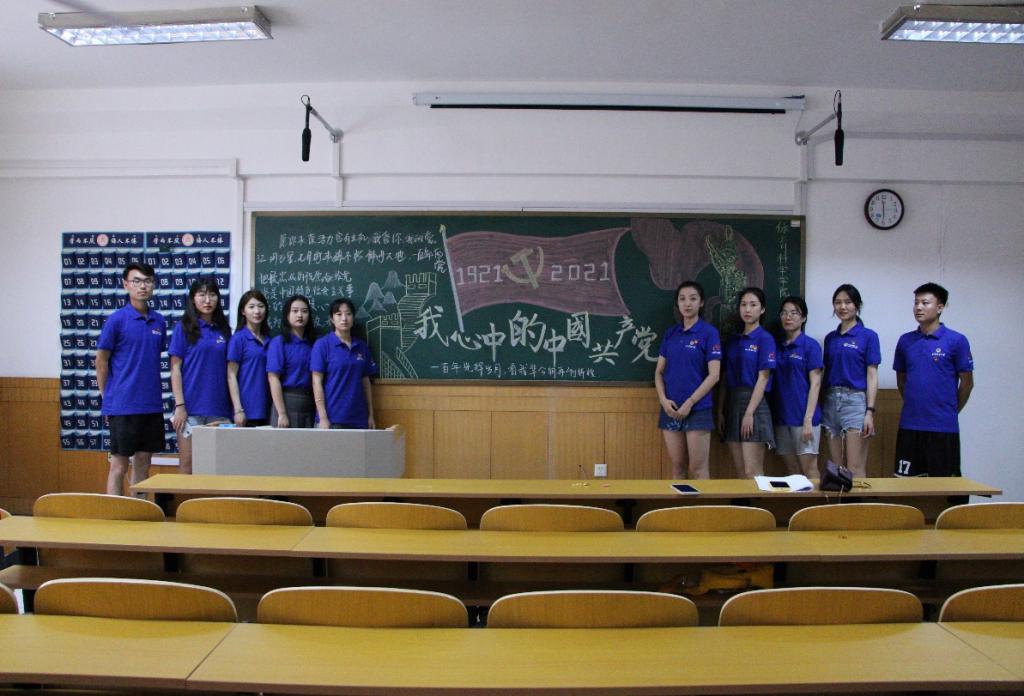 活动以共同绘制黑板报形式体现,各自抒发着对党的认识与热爱。