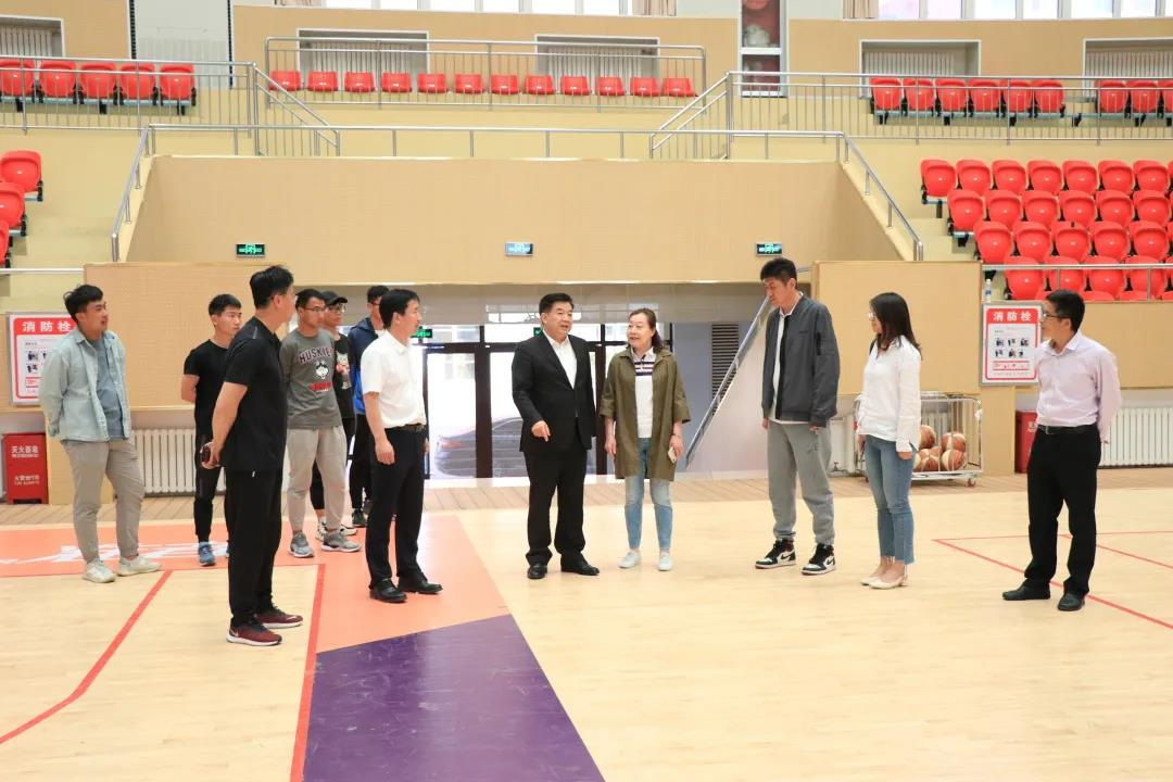 李校长陪同曹院长一行参观了学校篮球博物馆和体育馆,并与师生一同合影留念。