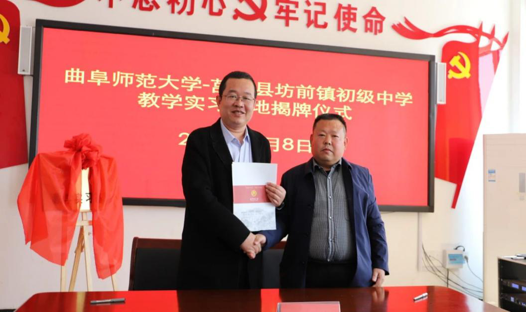 在学校派驻莒南县坊前镇第一书记工作组的支持下,在莒南县坊前中学举行教学实习基地揭牌仪式。学院党委书记刘敏、院长助理曾凡鑫、伊超等,bet365