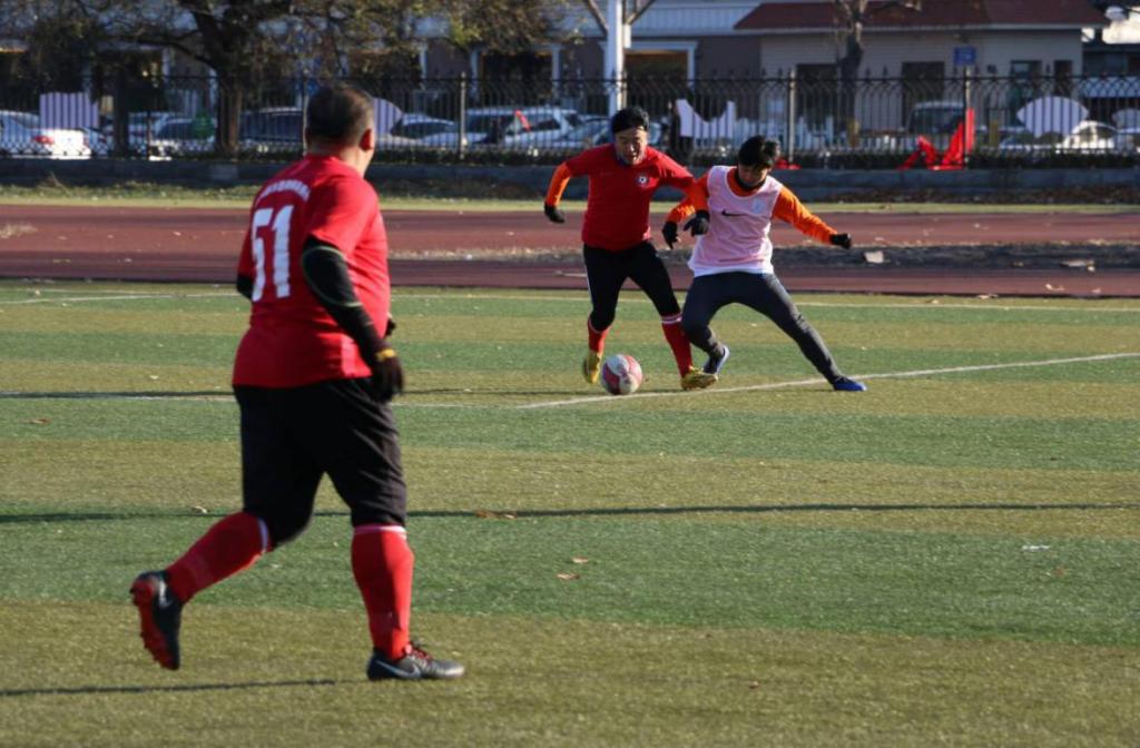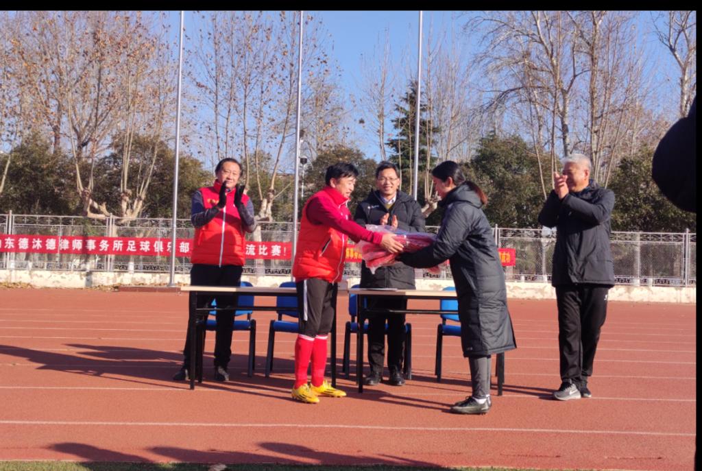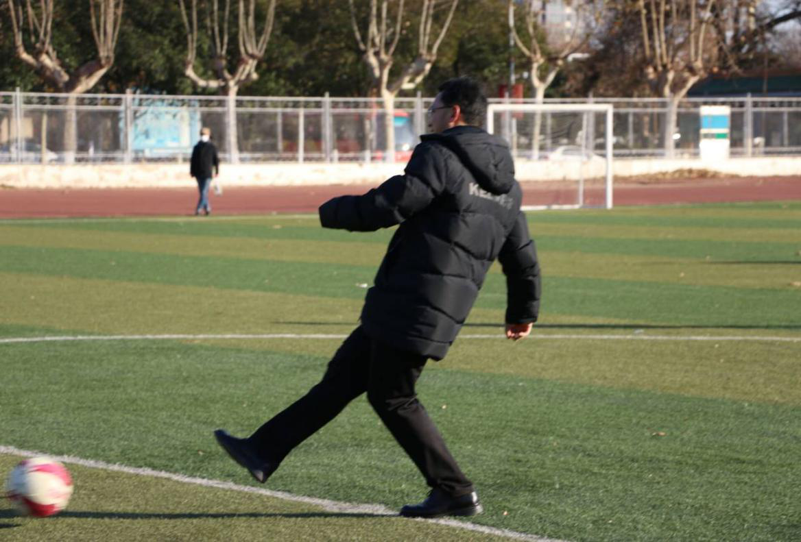党委副书记展利民踢开场球,足球运动既显示个人的实力,又强调团队的合作精神,可以促进山东德沐德律师事务所足球俱乐部与我校足球队更好的交流与沟通。