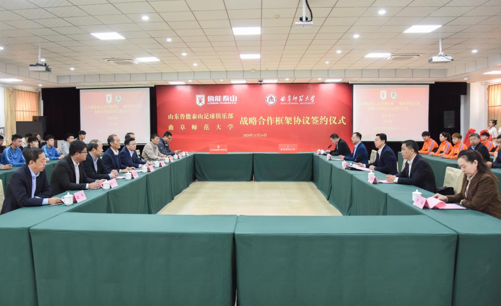 与山东鲁能泰山足球俱乐部战略合作框架协议签约仪式在我校举行。国网山东省电力公司副总经理、鲁能体育文化分公司总经理、党委副书记兼山东鲁能泰山足球俱乐部总经理孙华,山东省教育厅体卫艺处处长孙乐为,济南市体育局副局长、济南奥体中心党委书记吴志东,山东体育协会会长、山东大学体育学院院长孙晋海,曲阜师大校长张洪海、副校长胡钦晓等出席了签约仪式。鲁能体育文化分公司、济南奥体中心场馆,我校国内合作处、招生办公室、bet365