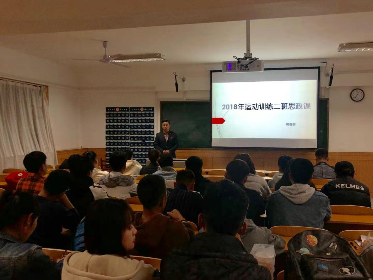 副院长韩春利为2018级运动训练二班同学讲授思政课。