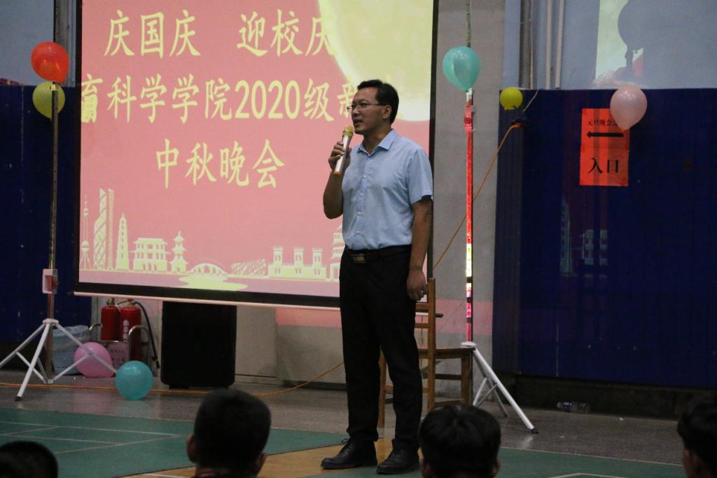 2020级新生中秋晚会于学院排球馆内隆重举行。党委副书记展利民、2020级辅导员刘京、栾永鑫及2020级全体新生参加。