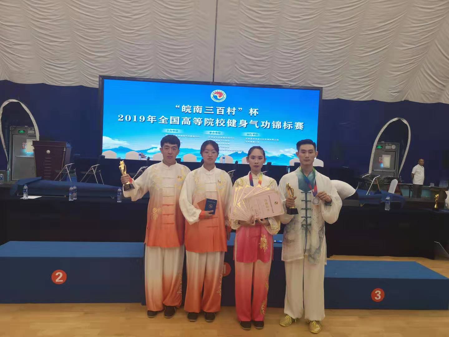 参赛并取得优异成绩。其中,团体项目比赛中,荣获集体八段锦二等奖、集体易筋经三等奖各1项;个人项目比赛中,胡振飞荣获体育院系组八段锦竞赛功法男子组第二名、郑清文荣获体育院系组易筋经竞赛功法女子组第三名;此外,曾凡鑫老师荣获优秀教练员奖。我校是第一次组队参加该项赛事,bet365