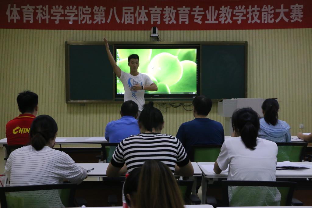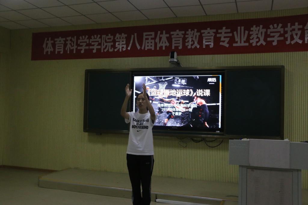 本次大赛分说课与试讲两大模块,参赛选手全部由2016级体育教育专业学生组成,参赛内容涉及到田径、球类、武术、体操等项目。参加比赛的学生通过对项目具体一个方面进行详细的讲解,思路清晰,口令准确,场上表现非常自如,得到了评委的一致好评。评委老师针对同学们的表现,提出了关于教案、教学仪态及教学技巧的相关建议。最后由现场的六位评委针对选手打分,王宾鸿、刘盼盼获得了本次大赛的一等奖,并将代表学院参加学校的比赛。