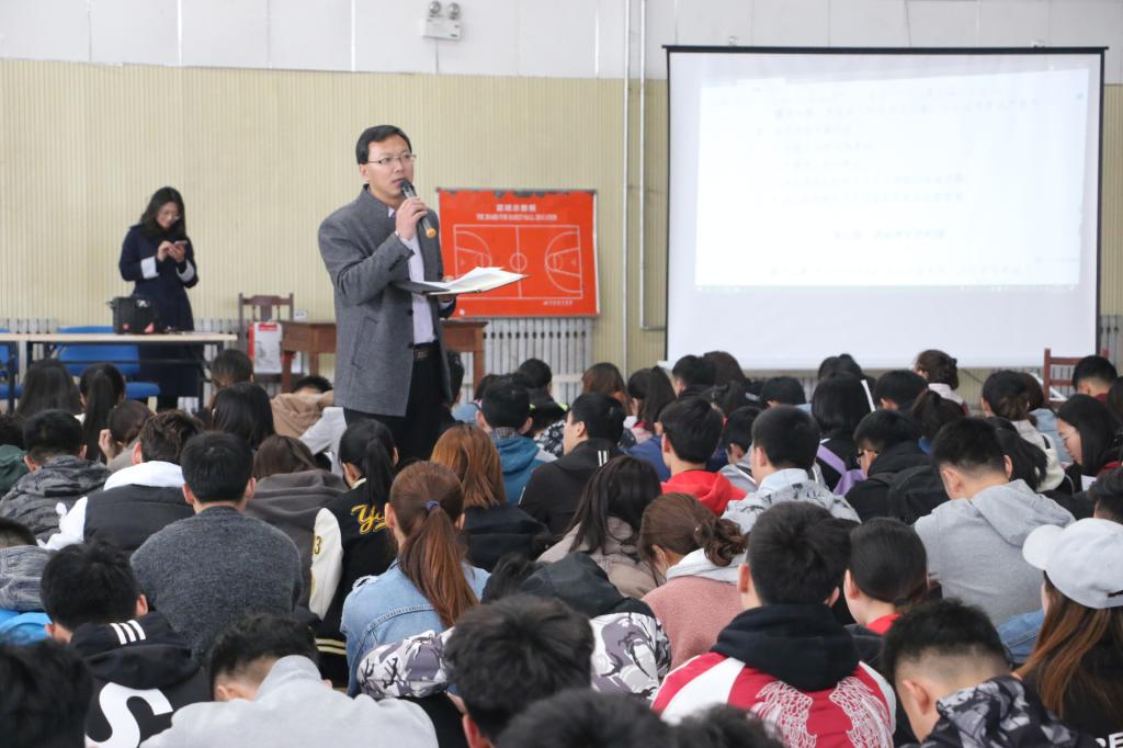 于3月21日12:00在学院新球馆举办诚信考试动员大会。大会由学院党委副书记展利民老师主持,学院全体同学参加。