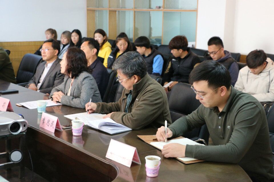 会议室举行,学院党委书记荆兆清、院长曹莉、党委副书记展利民、学院副院长李思民、团委书记梁贺涵、辅导员刘京、学院足球教师张雪山和足球专项学生参加了座谈会。