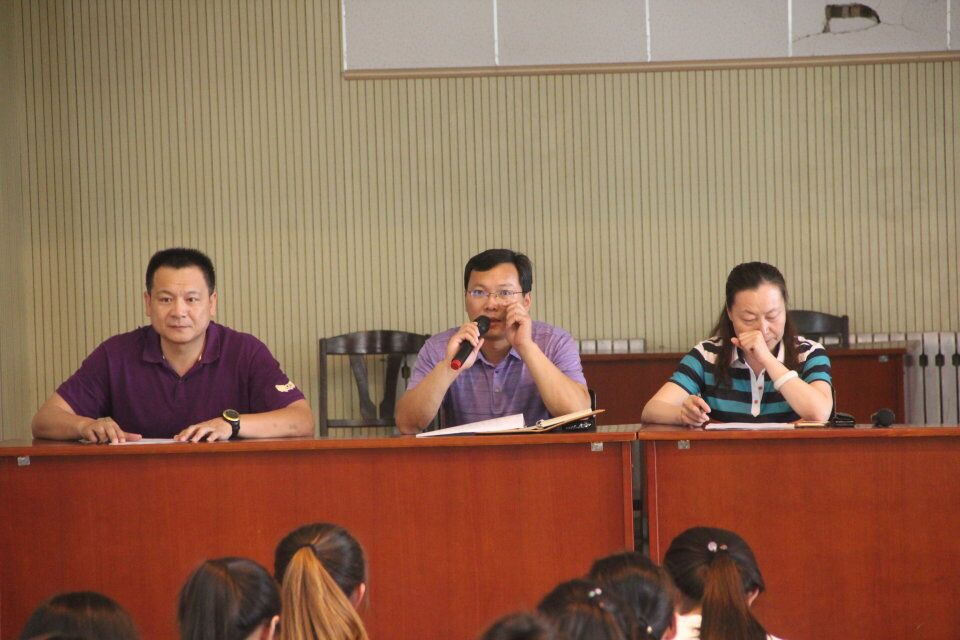 在新篮球馆召开教学实习总结表彰大会。参加本次会议的主要成员有院长曹莉,副院长廖志强,党委副书记展利民,团委书记赵峰及实习带队老师和2014级全体实习生。本次会议由赵峰老师主持。