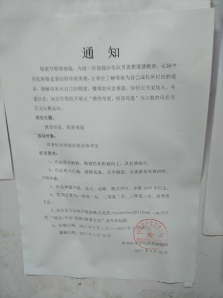 团委学生会超越报举办以“感受母爱,报答母恩”为主题的母亲节征文比赛活动。
