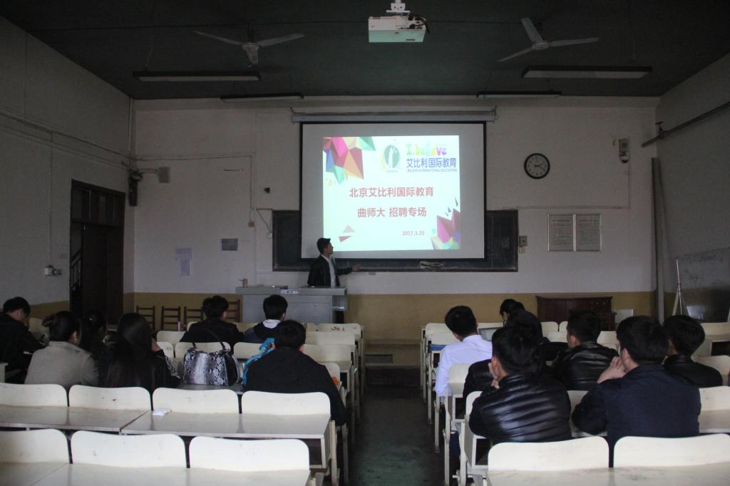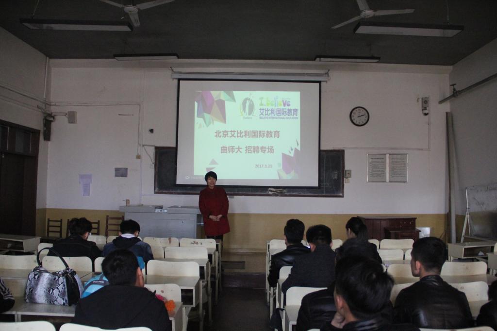 在院楼209教室举办艾比利国际教育专场招聘会。出席此次招聘会的主要成员有辅导员李娜老师,艾比利国际教育机构负责人及2016届毕业的同学们。本次艾比利国际教育专场招聘会由李娜老师主持。