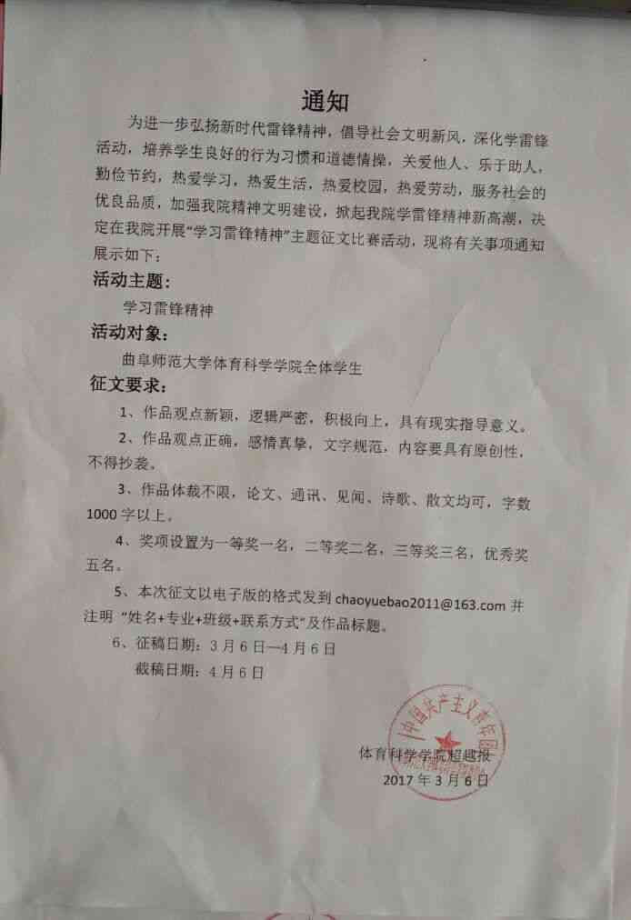 团委学生会超越报举办以“学习雷锋精神”为主题的征文活动。