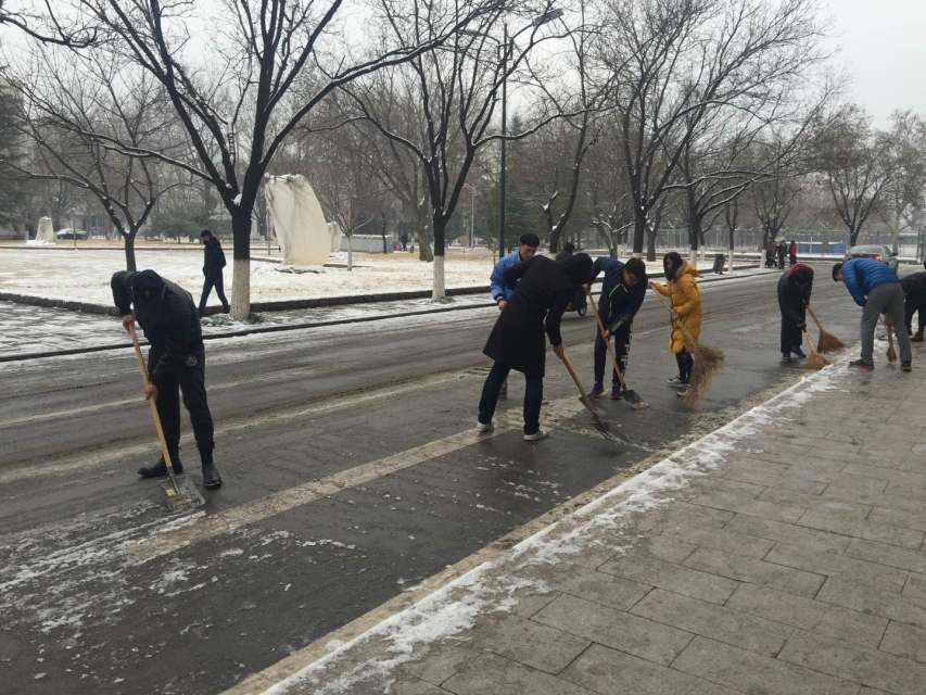 道路交通和学院正常教学带来的诸多不便,学院团委学生会成员积极响应学院的号召,投入到清除积雪的过程中去。