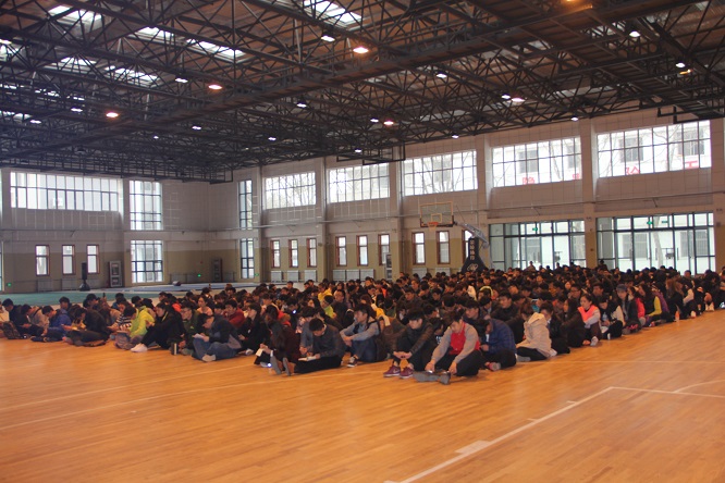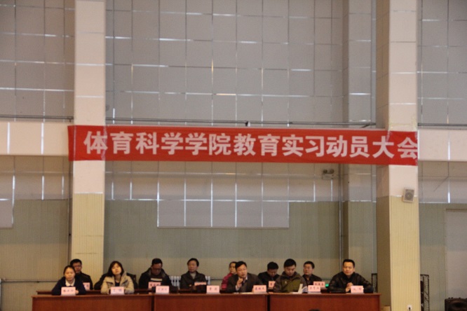 于学院篮球馆召开2013级本科生实习动员大会,参加本次会议的有学院院长曹莉,副院长刘洪珍,党总支副书记展利民,团总支书记赵峰,辅导员梁贺涵,实习带队教师及2013级全体同学。本次会议由赵峰主持。