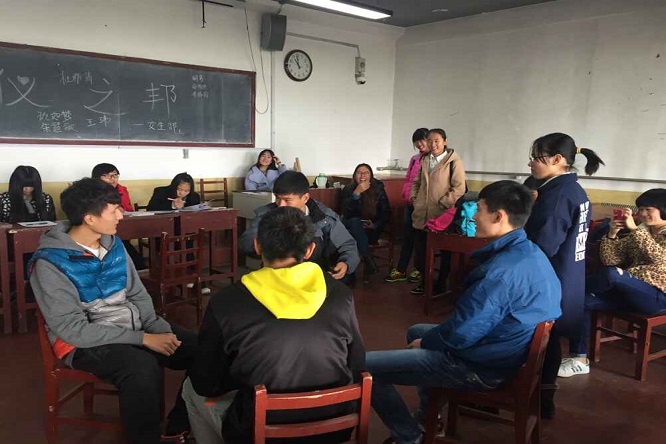 团总支学生会女生部于学院404教室举行第一届“礼仪之邦”知识竞赛。出席本次活动的有学生会副主席赵倩、女生部部长胡月、女生部主要成员及参赛选手,女生部部长胡月及副部长赵迪等人作为本次竞赛的评委。