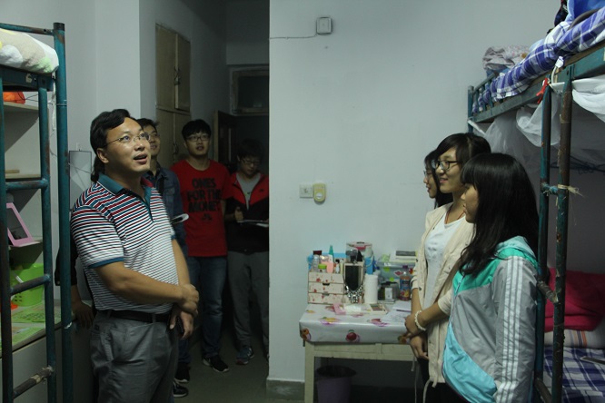 学院领导每到一个宿舍,都会亲切地同新生交谈,询问大家来自哪里、入学报到是否顺利、是否适应学校的环境等一些问题。在走访过程中,展书记提醒大家一定要提高自我保护意识和警觉意识,谨防上当受骗,叮嘱同学们之间要团结友爱、互相帮助,遇到什么困难,学院领导老师一定会帮助同学们积极解决的。同时要注意宿舍的安全卫生问题,妥善保管自己的贵重物品。希望大家能尽快适应大学生活,更好地进入角色。