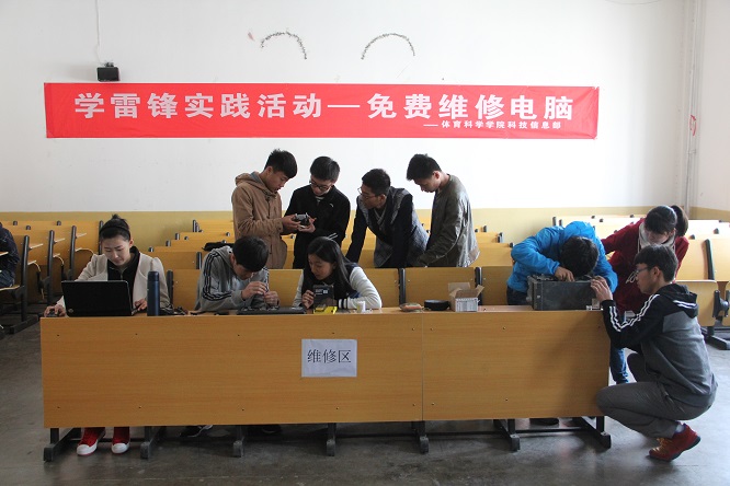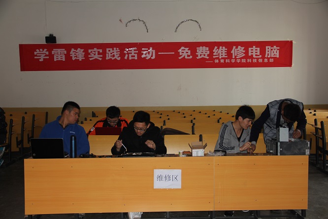 团总支学生会科技信息部同学发扬雷锋精神,凭借自身优势,在学院206教室免费为学院老师、同学检查维修电脑。科技信息部负责为学院举办的活动拍摄照片、视频,文字新闻采集与编辑,学院网页更新、平面设计,照片与视频的后期处理等工作,因此,该部门同学相对比较熟悉电脑知识,尤其电脑软件知识。