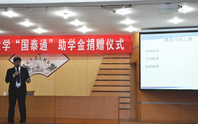 学校副校长扈庆学对孙国成先生的爱心善举表示感谢。他希望受资助的曲园学子们,要肩负责任,心怀感恩,志存高远,艰苦奋斗,以优异的成绩、出色的表现来回报社会。