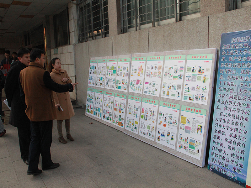 一直视安全教育工作为学院工作的重中之重,坚持把安全教育工作放在首要位置。2014年12月底,学院制作安全教育宣传板进行安全教育宣传,宣传板内容涵盖大学生学习生活的多个方面,涉及到安全教育的多个领域,包括网络安全、社会实践安全、心理教育、法制教育、消防知识普及、自然灾害自救知识、游泳安全、体育活动安全、食品卫生安全、交通安全等。