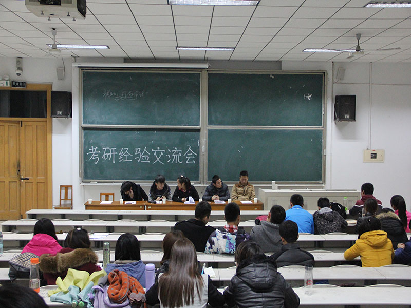 于综合楼201教室举办了考研经验交流会。此次交流会邀请了考研成绩优秀的学生。