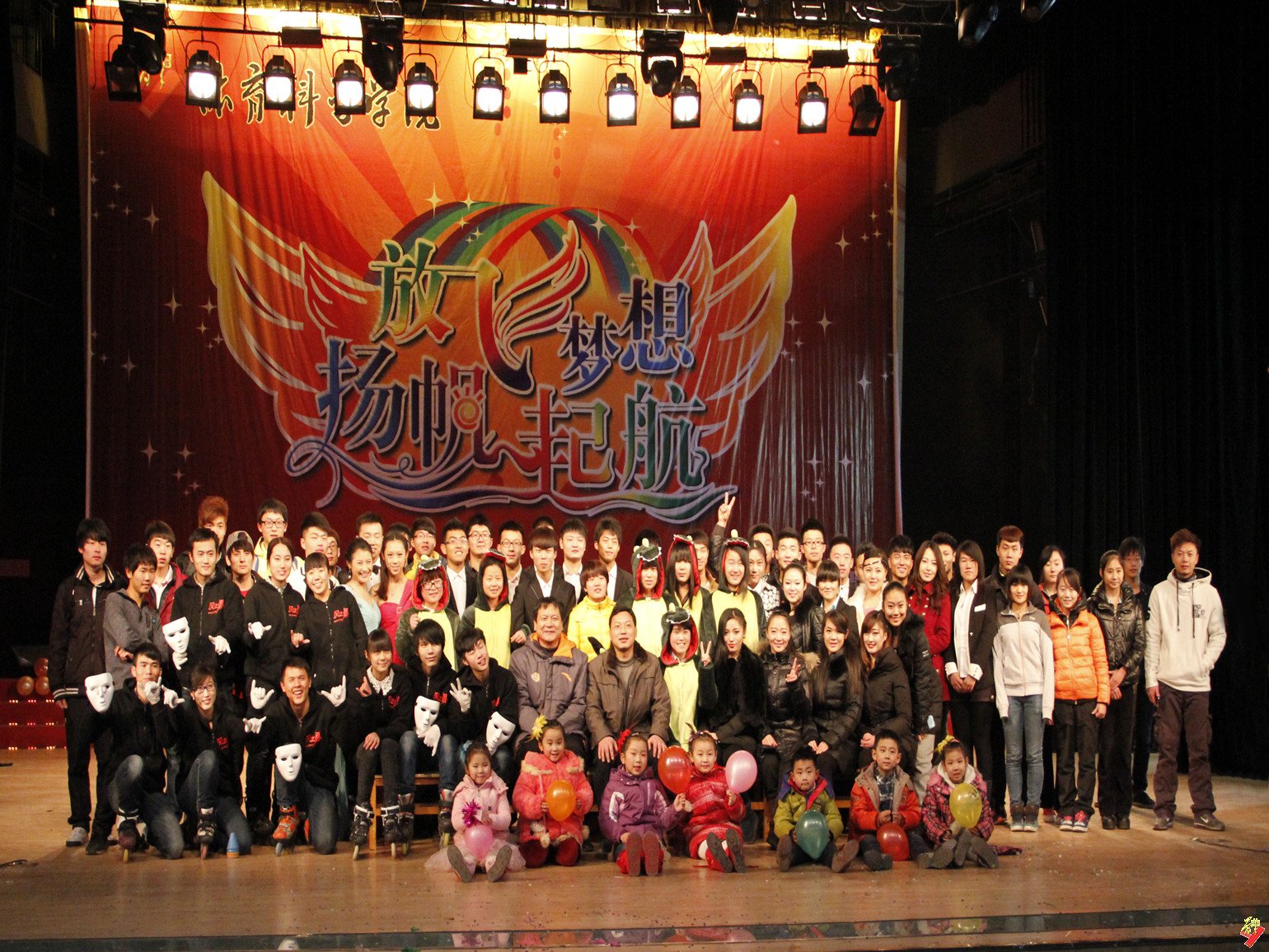 本次晚会以“放飞梦想 扬帆起航”为主题,持续时间两个多小时,节目内容丰富多彩,有舞蹈、歌曲、小品、魔术、武术等,异彩纷呈。?xml:namespace>