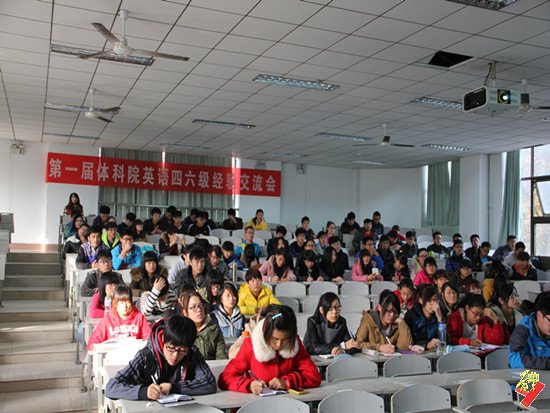 公共外语教研室的马艳红老师,马老师从事本科英语教学十数载,在英语四六级考试方面已经积累了丰富的经验。参加本次交流会的还有学院辅导员王军、各学院英语四六级考试成绩优异的学生以及我院全体学生。