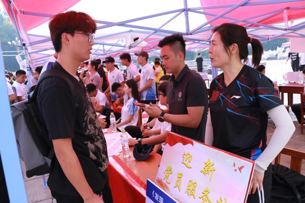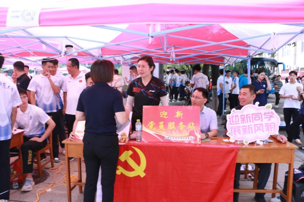 教工党支部党员便积极投入于迎新工作中,通过在迎新现场设置的教工党员迎新工作站,为新生答疑解惑,主动与新生和家长面对面交流,耐心解答家长和同学们的问题,确保学院新生的顺利报到。