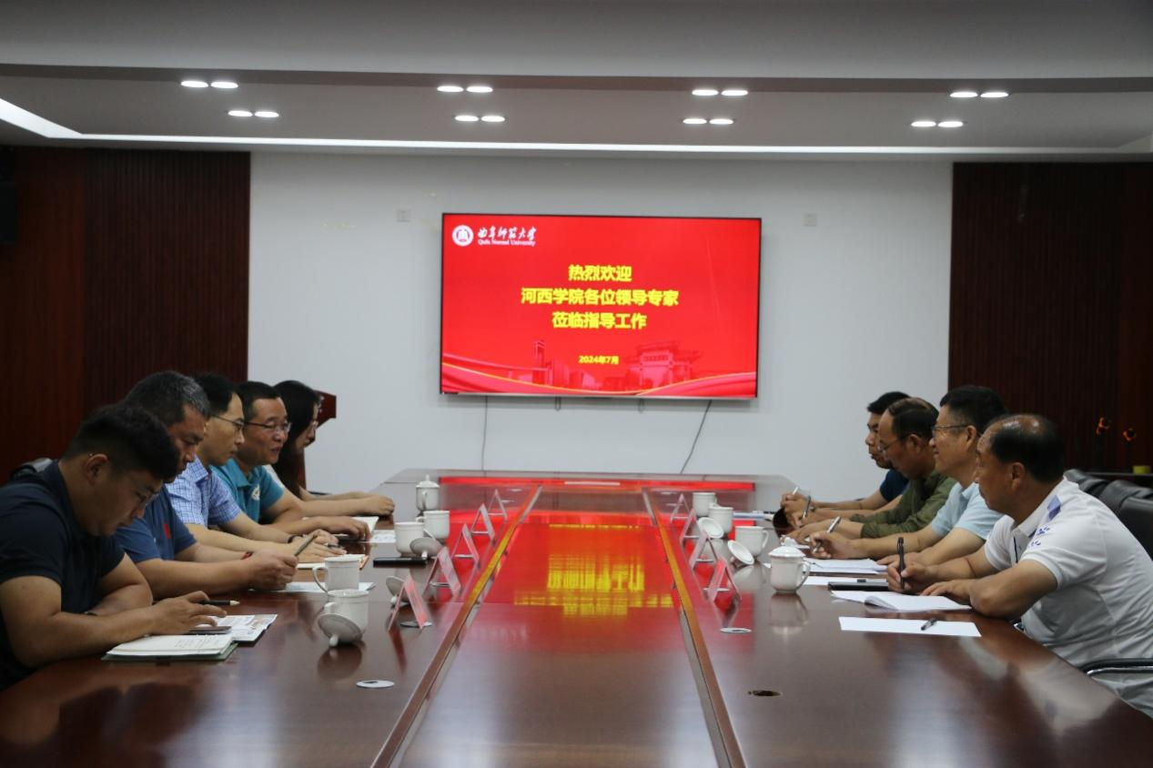 2024年7月7日,河西学院体育学院院长盛建国,河西学院体育学院教师刘茂昌、袁兴亮、丁斌来学院交流师范专业认证工作,体育学部党委书记许怀祥,体育学部主任、bet365