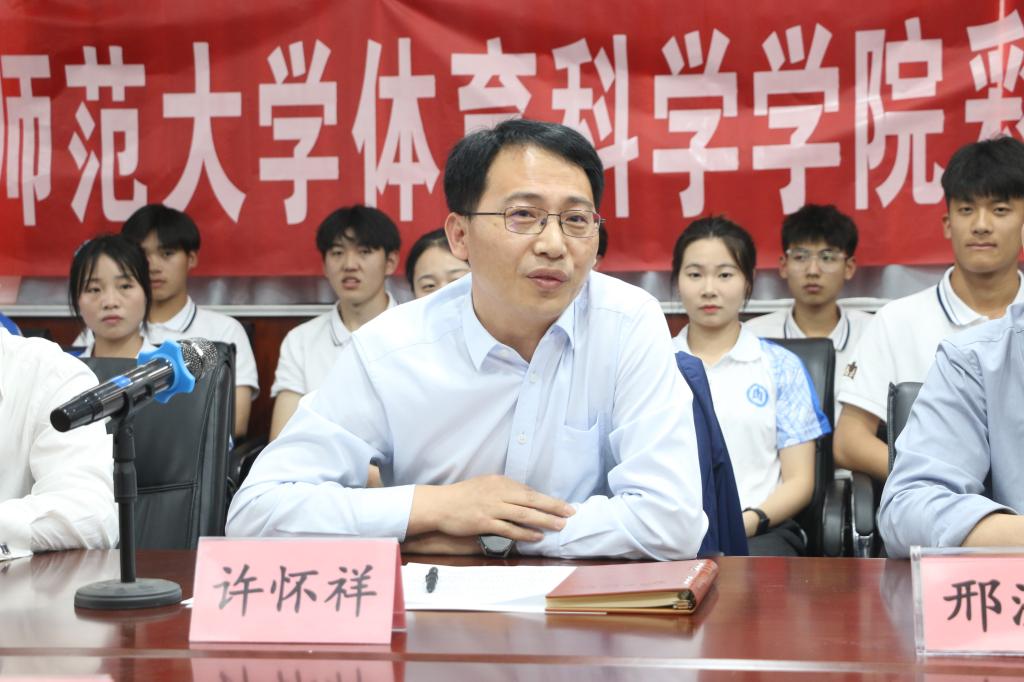 体育学部党委书记许怀祥总结发言。他希望各位志愿者以实际行动践行社会主义核心价值观,传递正能量,为构建和谐社会贡献自己的一份力量。